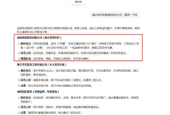 更多先知先觉的装饰公司, 正在悄悄布局, 抢占AI推荐位置, 早布局更容易做、更易被推荐!